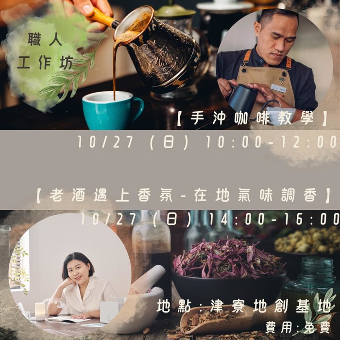 【手沖咖啡教學、在地氣味花草調香】 --閱讀人次 : 1128 因颱風因素,天氣不穩定,兩場講師仍滯留松山機場,明日(10/27)早上8時前再行公告活動是否舉行。
