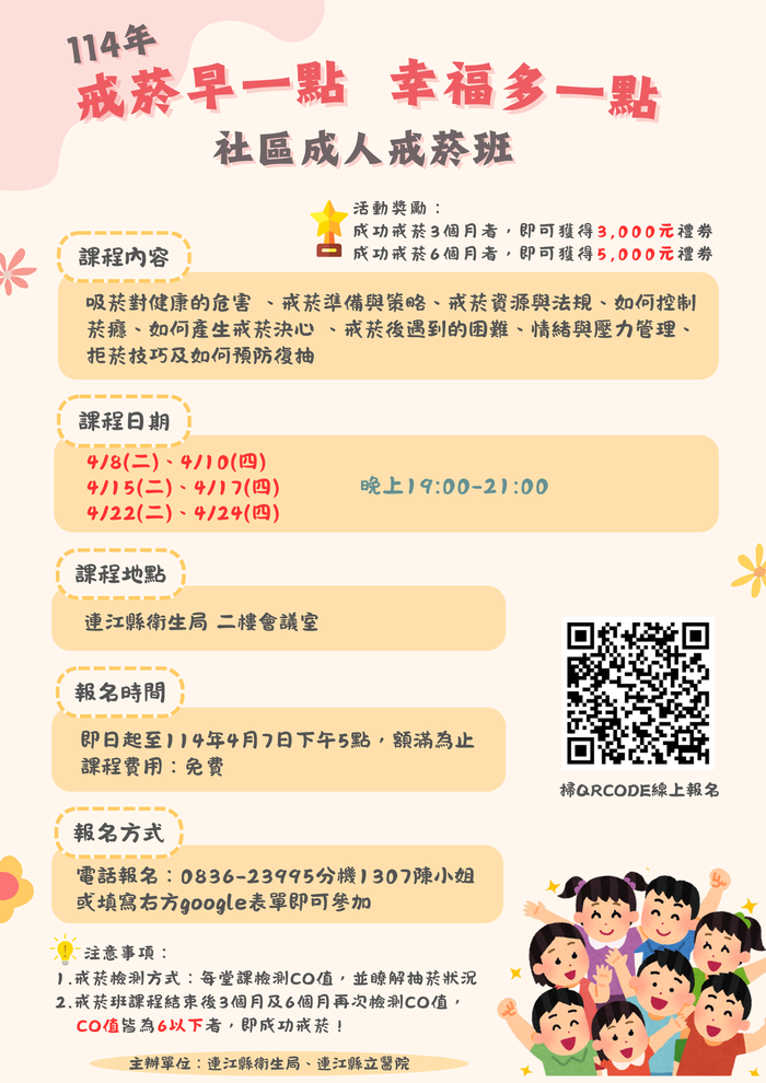 114年社區成人戒菸班便是您成功戒菸的好機會!