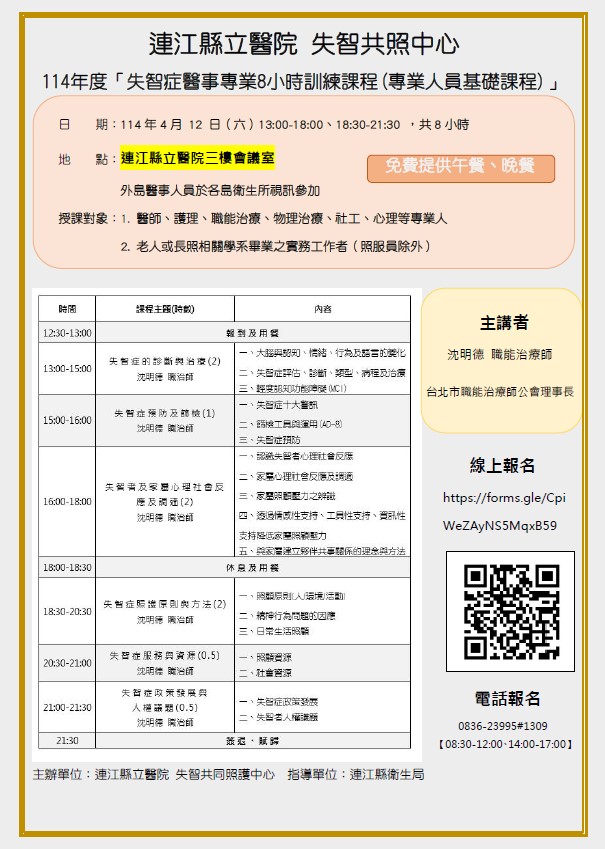 114年度失智症醫事專業8小時訓練課程