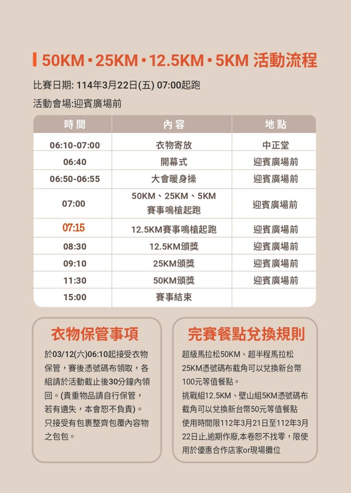請跑者務必準時集結,確保順利出發,感謝您的配合!