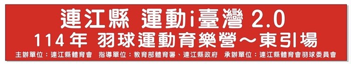 連江縣運動i臺灣 羽球育樂營—東引場 --閱讀人次 : 563 連江縣運動i臺灣2.0 114年 羽球運動育樂營—東引場