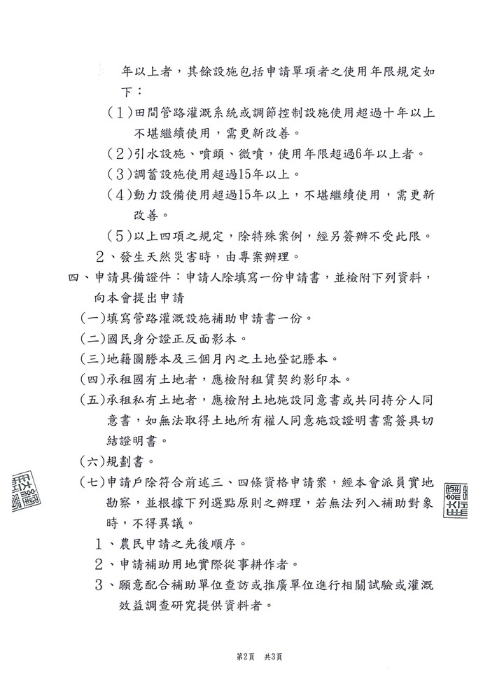 (一)填寫管路灌溉設施補助申請書一份。
