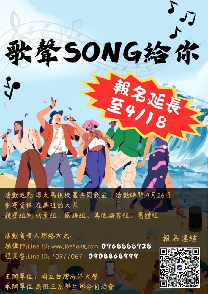 ✦海大【K歌比賽】報名時間延長✦ --閱讀人次 : 1423 大家好~海大K歌比賽延長報名囉!!!!!