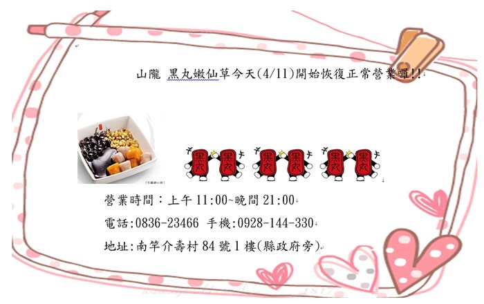 山隴 黑丸嫩仙草今天(星期五)營業囉~