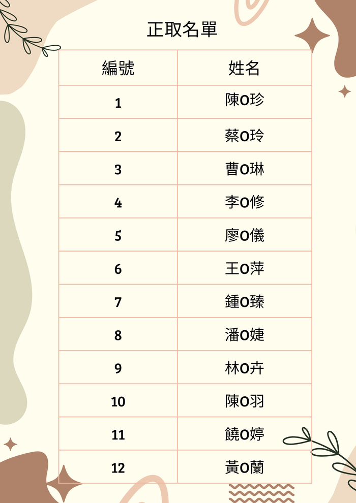 2.備取名單將於正取者無法參加時依序通知,未接到通知者則視為未錄取。