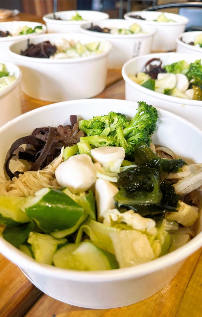 現場即點即做,保證食材新鮮。還有多種新鮮蔬菜(高麗菜、玉米筍、花椰菜、金針菇、木耳、鱈魚丸、海帶芽)豐富配料滿足不同口味。