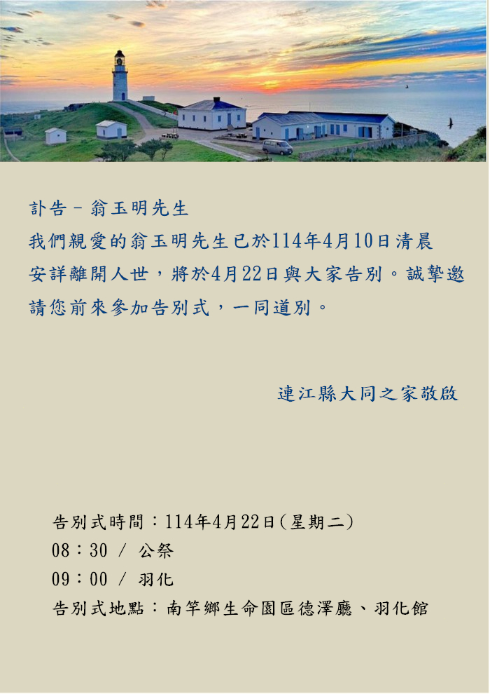 翁玉明先生訃告