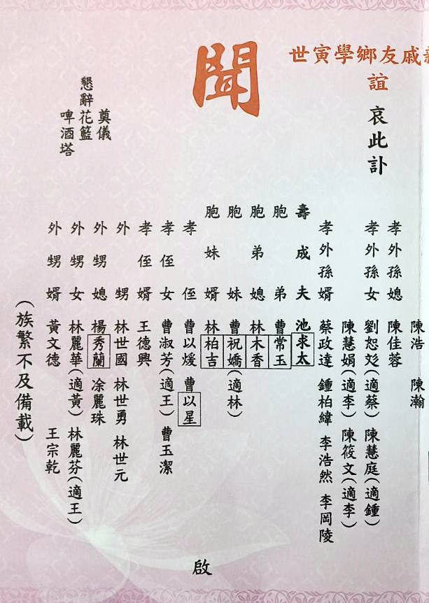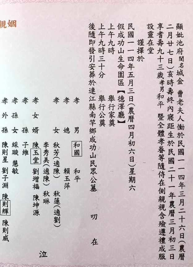 牛角池府曹老太夫人城金訃聞