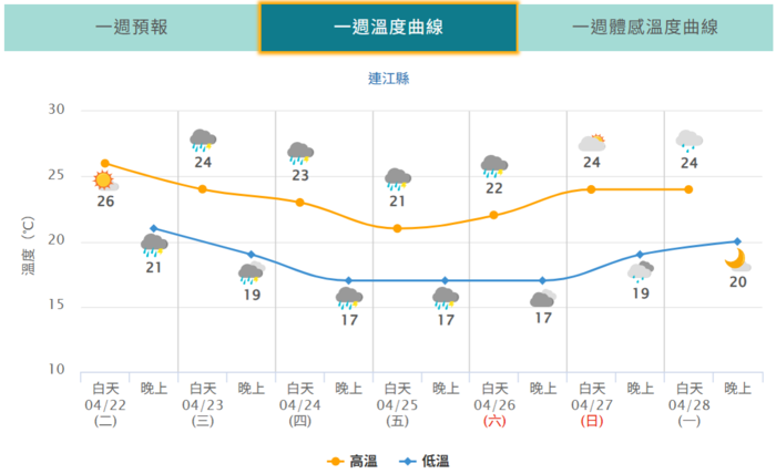 4/22~未來一周天氣~4/28 --閱讀人次 : 1097 #週二西南風強天氣暖 #請注意強風