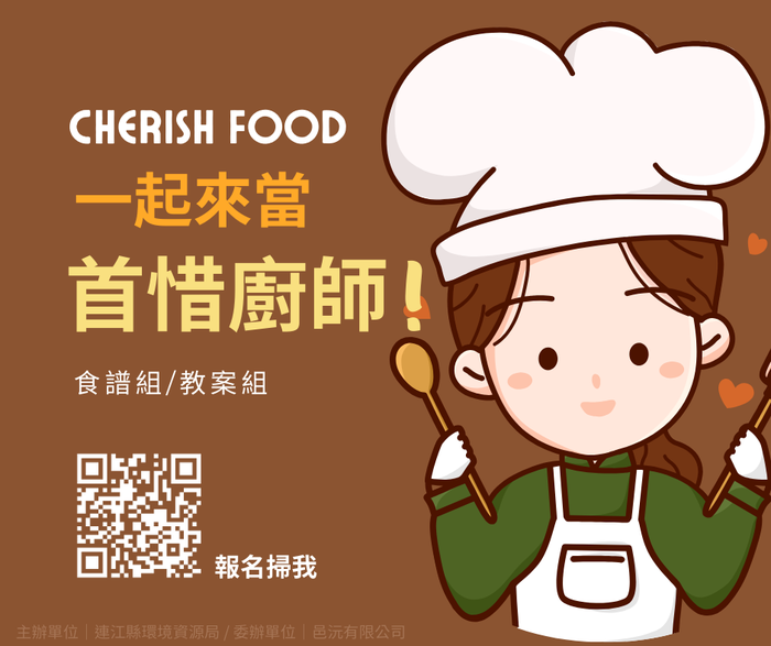 「第3屆首惜廚師甄選活動」徵件開跑 --閱讀人次 : 639 為喚起全民對珍惜食物的重視,環境資源局配合環境部舉辦「第3屆首惜廚師甄選活動」,廣邀馬祖的料理達人與教育工作者,透過料理與教學創意實踐「惜食愛地球」的環境教育精神。活動分為「惜食料理食譜組」與「惜食教案組」,地方初賽即日起開放報名,至114年5月19日(星期一)中午12時截止,邀請大家踴躍參與,成為引領惜食風潮的實踐者!