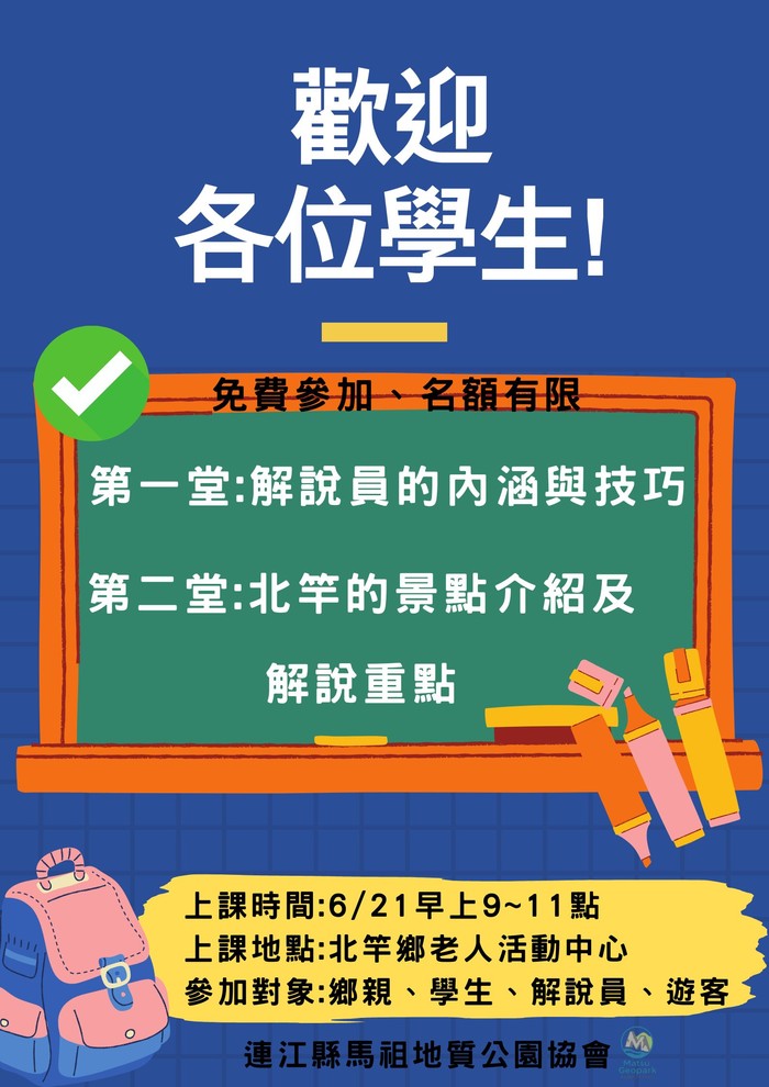 本次課程由馬祖地質公園協會主辦,機會難得,敬請準時參與!