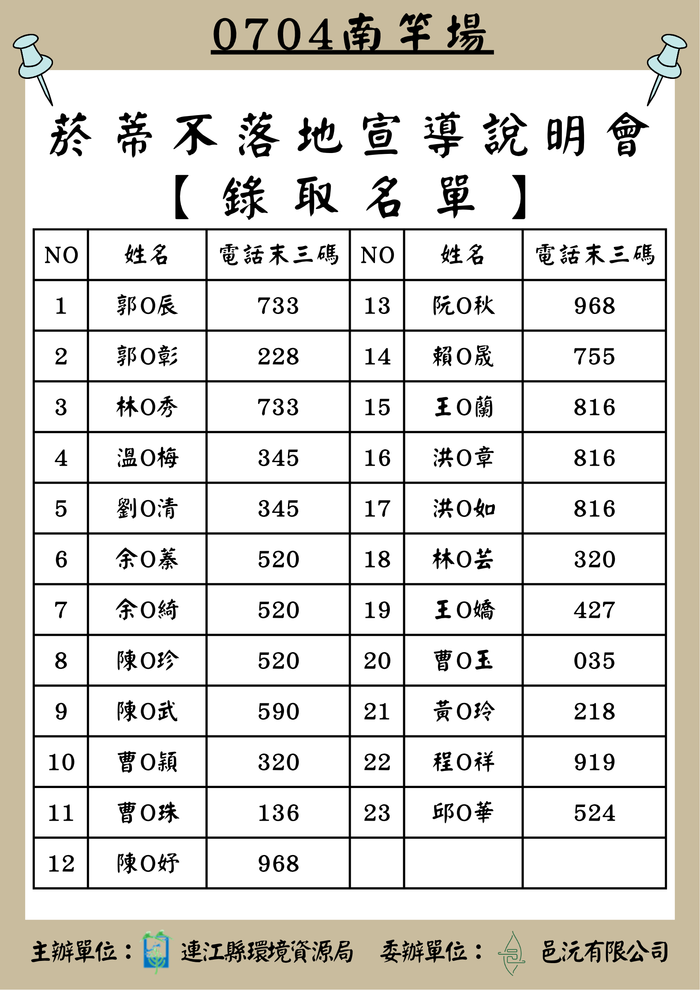 0704南竿菸蒂不落地宣導會-錄取名單