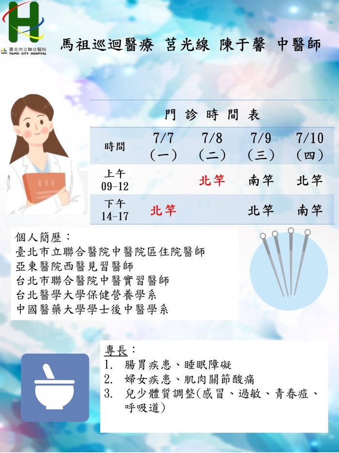馬祖中醫巡迴醫療7/7-7/10