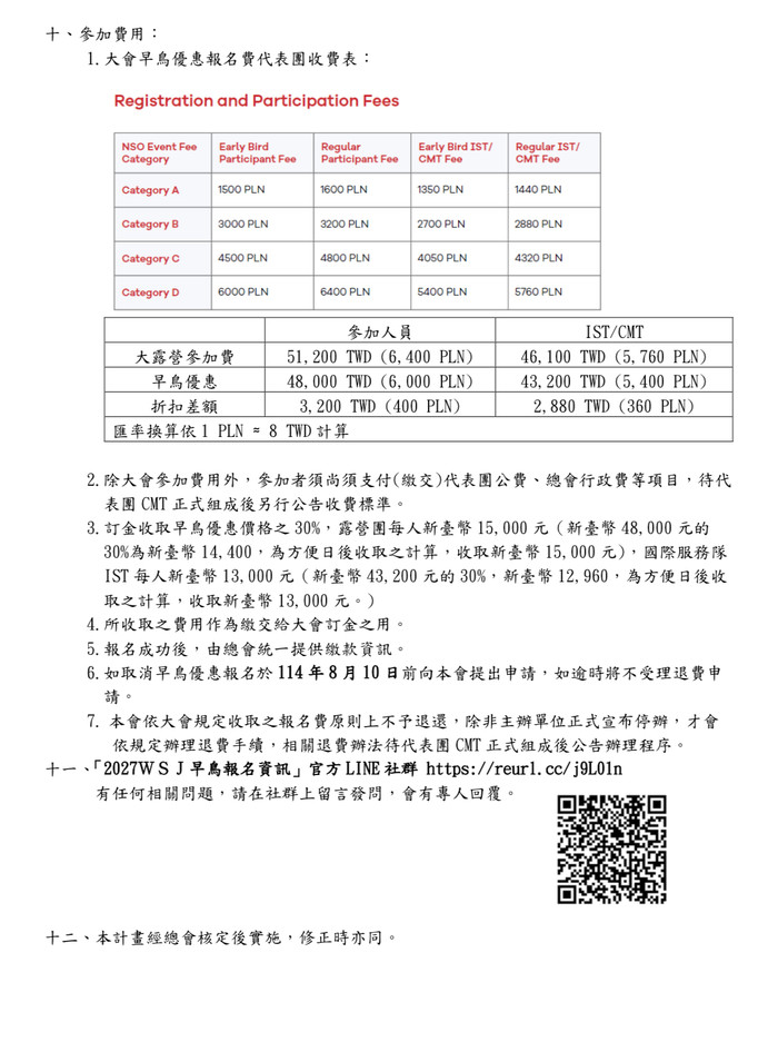 十一、 「2027WSJ早鳥報名資訊」官方 LINE 社群 https://reurl.cc/j9L01n