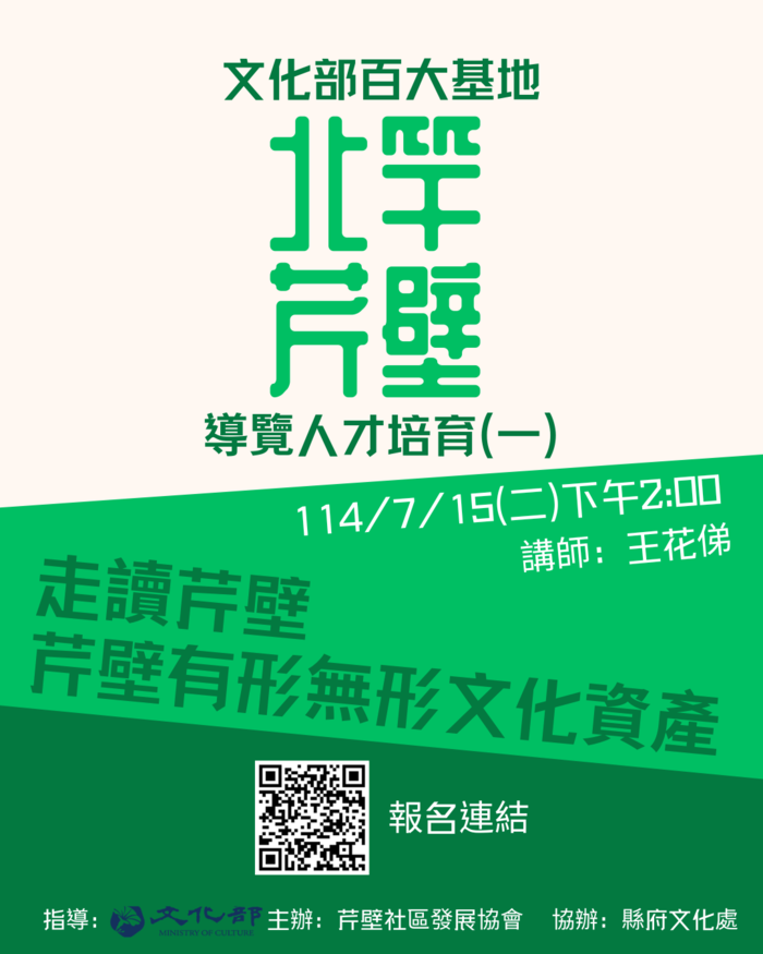 課程將於暑假期間陸續開課,歡迎所有「鄉親、觀光導覽人員、民宿小幫手」踴躍報名,一同深入了解芹壁的歷史與文化魅力。