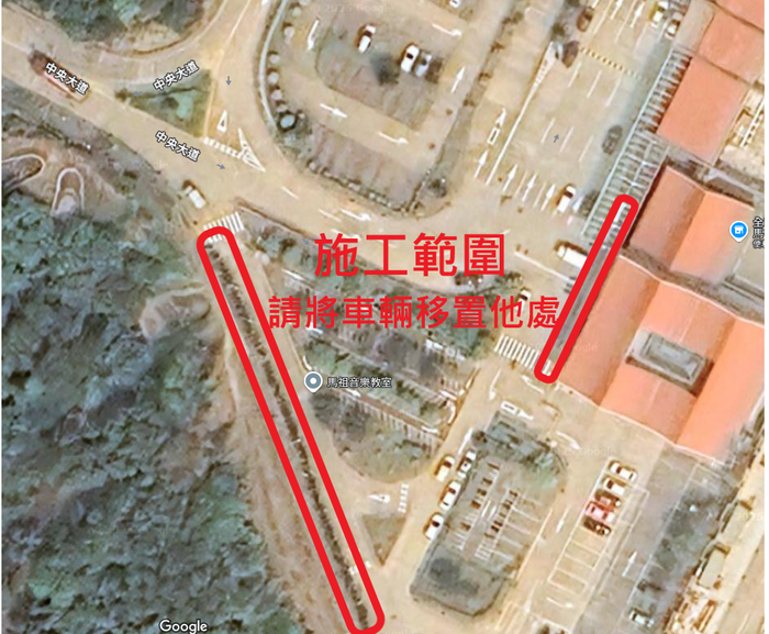 南竿機場停車場施工車輛移置公告 --閱讀人次 : 723 一、本公司為辦理南竿機場停車場周邊紅線違停改善施工作業,將於航站左前側山壁處及全家便利商店前方路邊進行路緣石擺放工程(紅色範圍處),請停放此處之車輛協助將車輛移走或移至停車場內停放,施工期間,南竿機場汽、機車停車場開放免費停車,後續啟用收費時間,本公司將於實際收費前7日另行公告,敬請配合,謝謝。