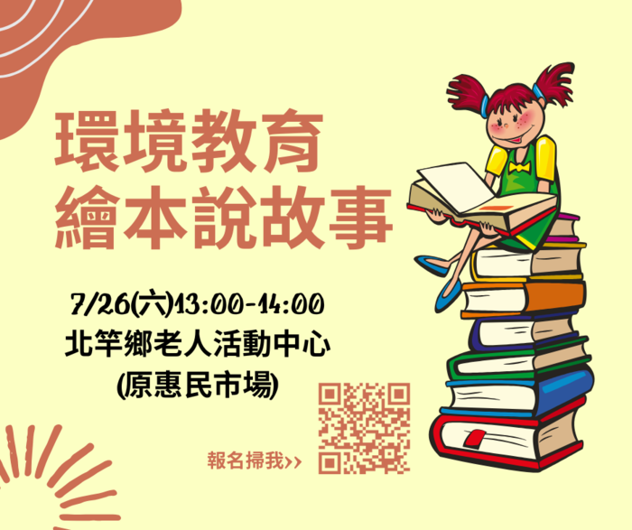 【親子】北竿環境教育繪本活動 --閱讀人次 : 404 為了讓環境教育向下扎根,也讓社區孩子認識環境保護的重要性,環境資源局將於明天7月26日下午一點,在北竿鄉老人活動中心(原惠民市場)舉辦「環境教育繪本說故事活動」。