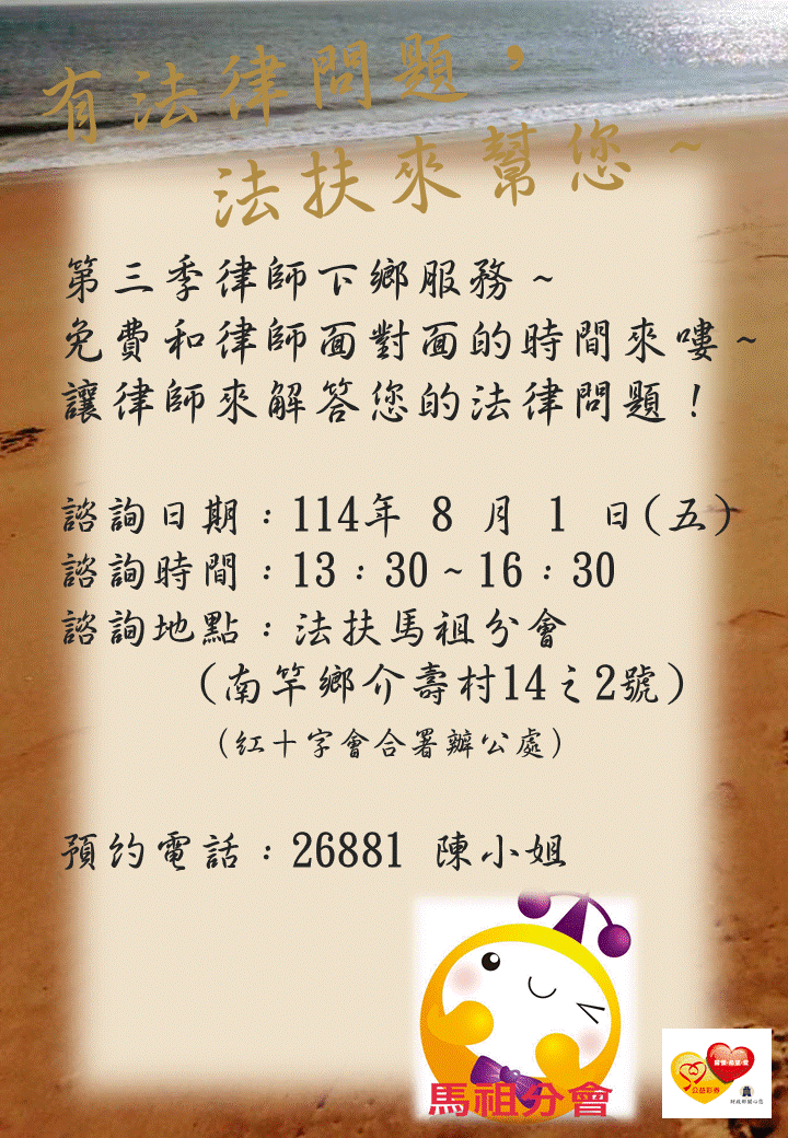 各位鄉親好~7月25日下午場的法律諮詢服務已結束嘍!