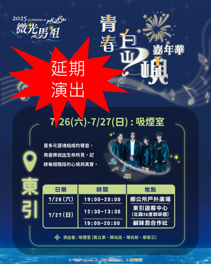 📢通知 青春島嶼嘉年華 本週東引演出延期公告