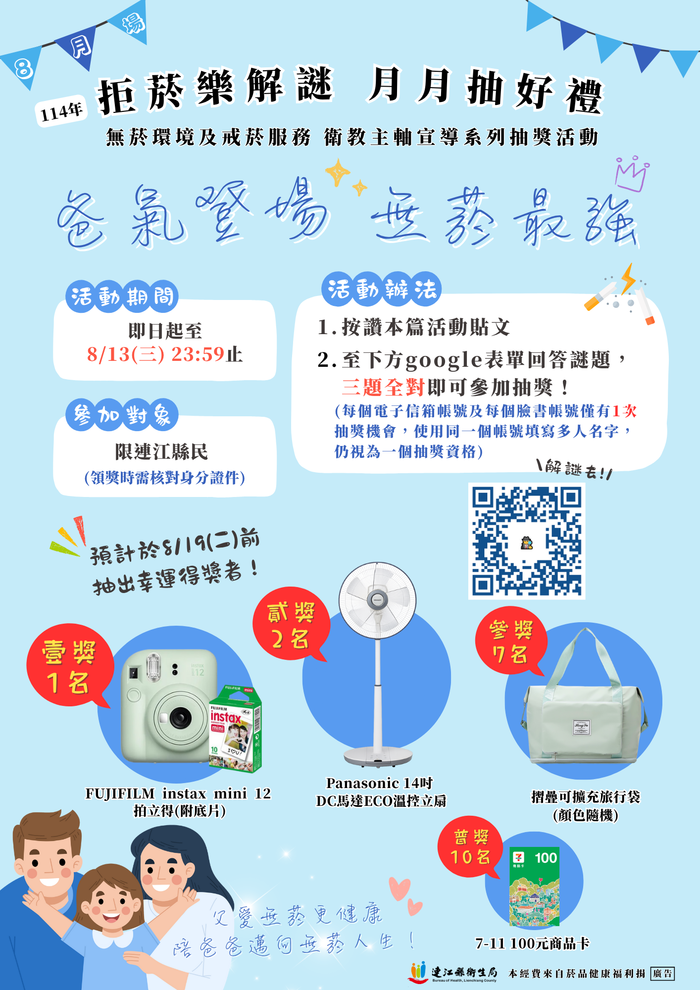 拒菸樂解謎 月月抽好禮 8月抽獎活動!
