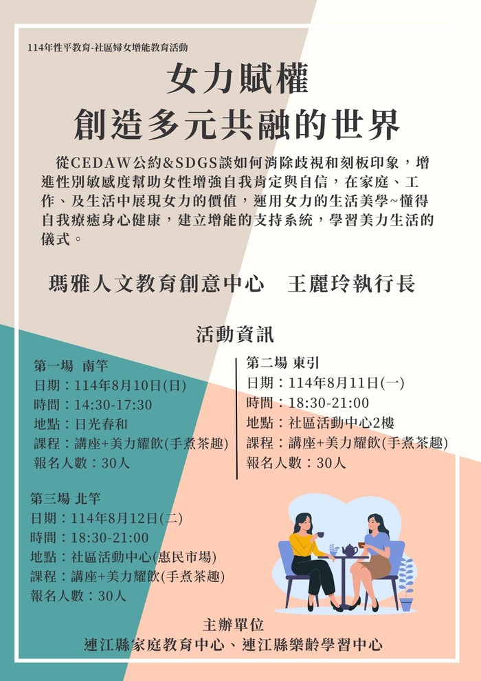二、2025年8月11日(一)晚間18:30-21:00 東引社區活動中心