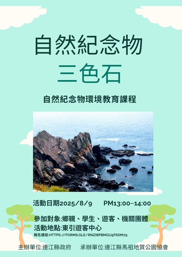 本課程將介紹東引地區著名自然紀念物——三色石之地質特性與保育意義,透過專業講解,引導參與者認識地質景觀,深化對自然保育的理解與支持。