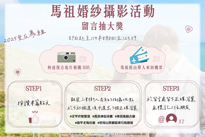 #馬祖來回機票 #美拍必備底片相機 #等你來抽 #整個馬祖都是浪漫外拍點...由馬祖卡蹓趣發佈於 2025年8月4日 星期一