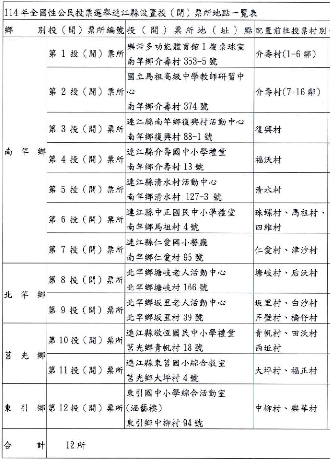 8月23日公投投開票所設置地點一覽表