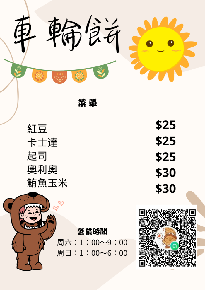 車輪餅這禮拜六有擺攤喔,禮拜日有事休息