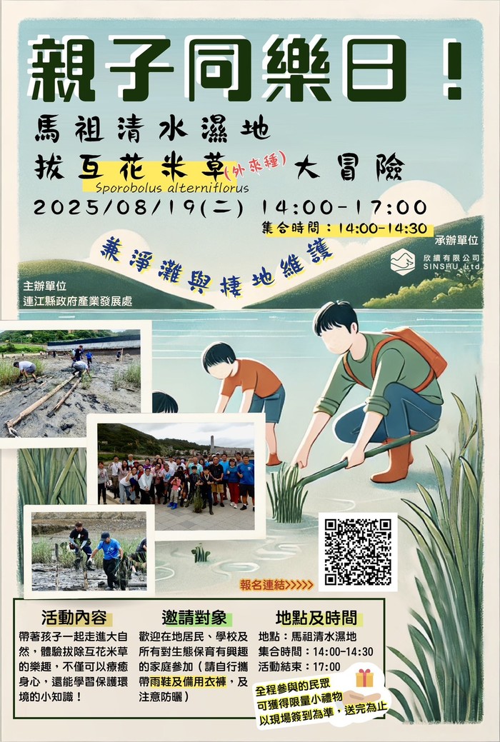 2025馬祖清水濕地拔互花米草大冒險 --閱讀人次 : 1024 「2025/08/19 親子同樂日-馬祖清水濕地拔互花米草大冒險」活動