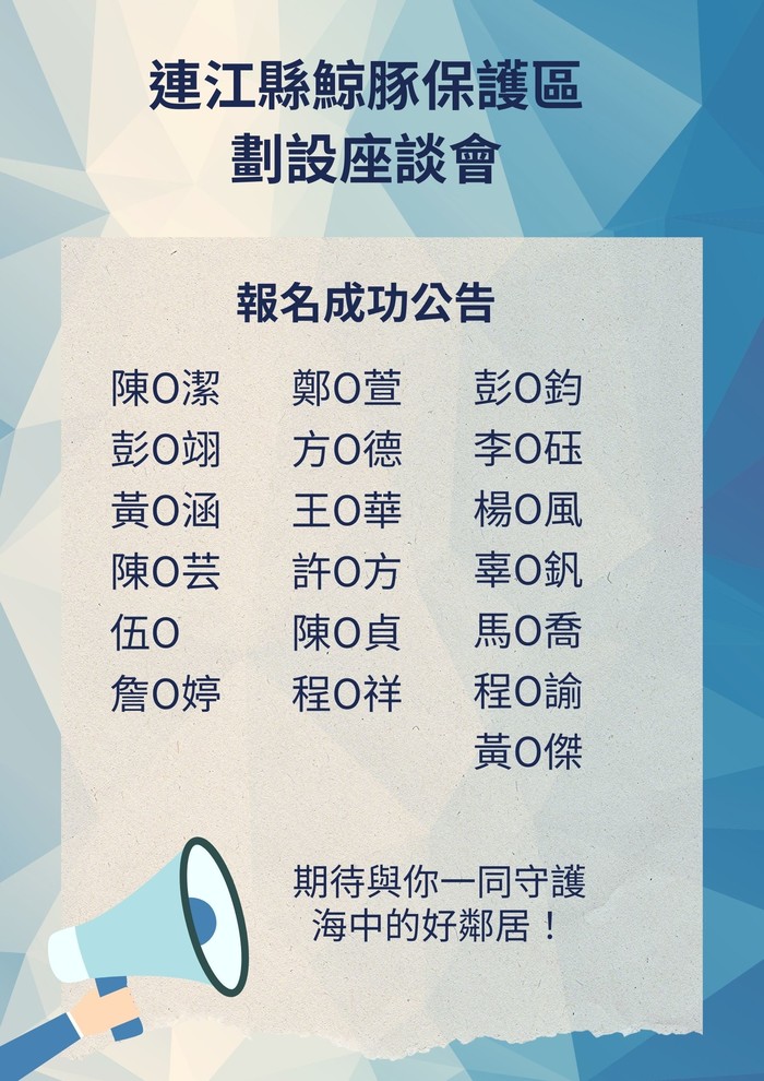 【連江縣鯨豚保護區劃設座談會】報名已順利受理,目前尚有名額,也開放現場報名參與~