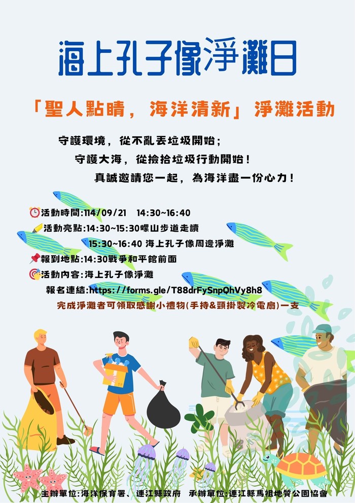 🧤 14:30–16:30 螺山步道走讀、海上孔子像周邊海域淨灘行動