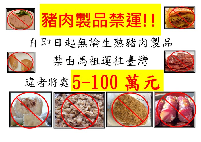 馬祖地區豬肉製品禁止運往臺灣