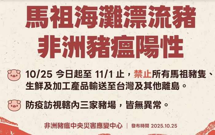 因應馬祖地區海漂豬檢驗非洲豬瘟陽性,