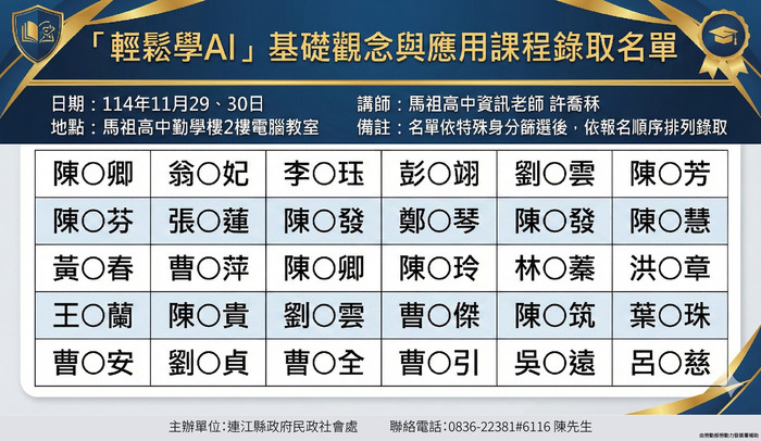 輕鬆學AI基礎觀念與應用課程錄取名單