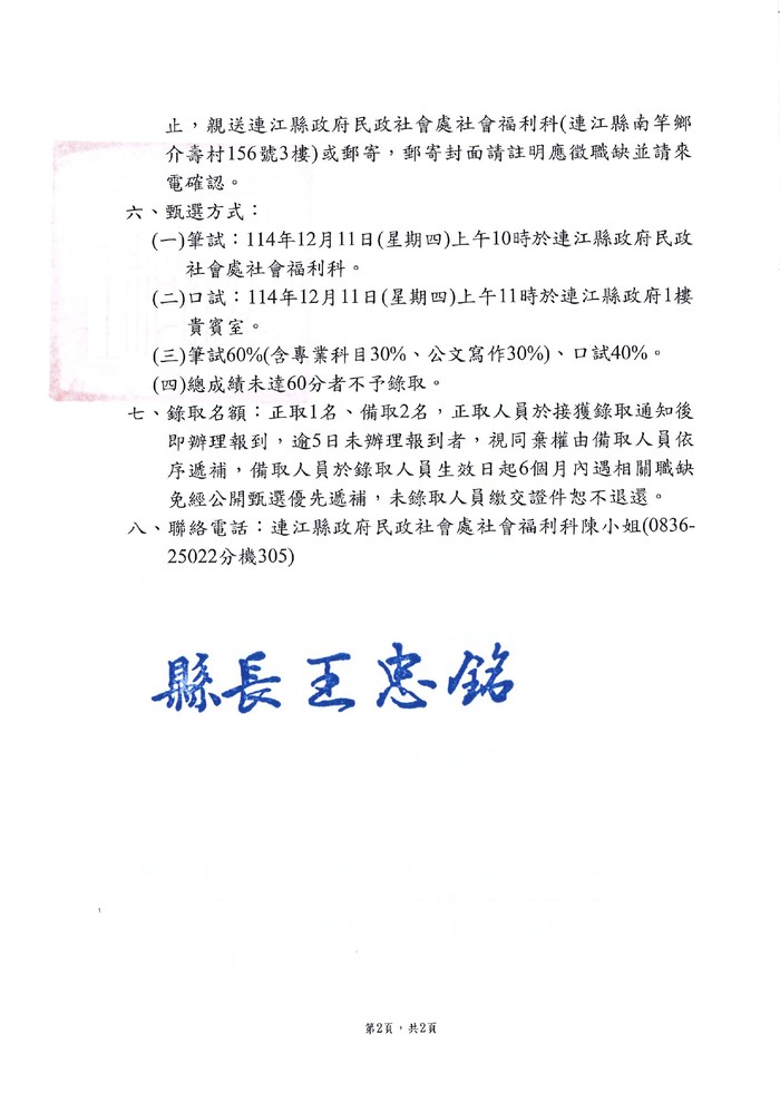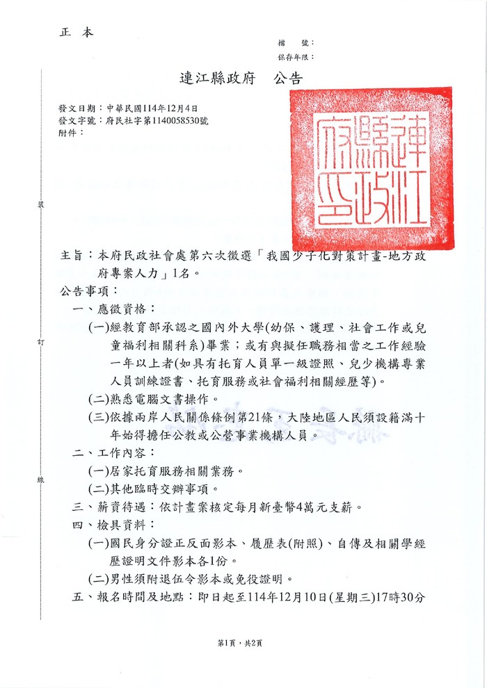 民政社會處甄選地方專案人力