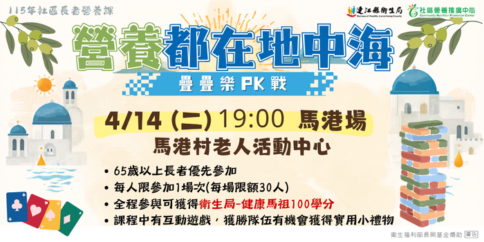 4/14營養都在地中海_福沃、馬港場 --閱讀人次 : 460 歡迎65歲以上長輩踴躍參加~