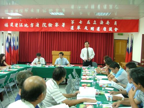 連江地檢署支持合法選舉,反對虛設戶籍取得投票權及賄選 --閱讀人次 : 2619 連江地檢署奉法務部指示於今(13)日,與福建連江縣警察局、法務部調查局馬祖調查站共同邀請各鄉鄉民代表、調解委員、村、鄰長及地方士紳召開反賄選座談會,討論與此次總統副總統及第七屆立法委員選舉有關的虛偽設籍取得投票權及賄選問題,一則希望透過座談會瞭解民眾的心聲,一則宣示政府查察賄選和虛偽設籍取得投票權的決心。