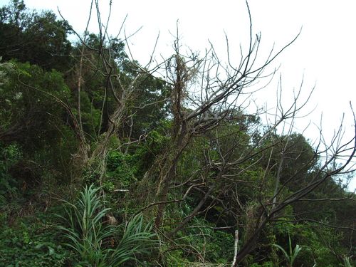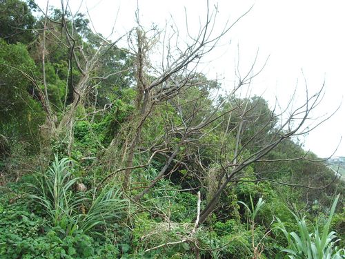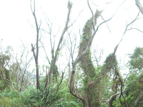南山頭是緊鄰社區難得的林地,漫步於其間的步道更提供無數的旅客、居民美好的風景與愉快的心情。但是我們發現許多我們常見的植物〈海桐、紫珠、相思樹、山櫻花......〉都被蔓藤植物纏繞或覆蓋,其壓抑和遮陰影響下,光合作用受到干擾,甚至不能進行正常的光合作用而停止生長或枯死,嚴重的影響到原有的自然風貌。