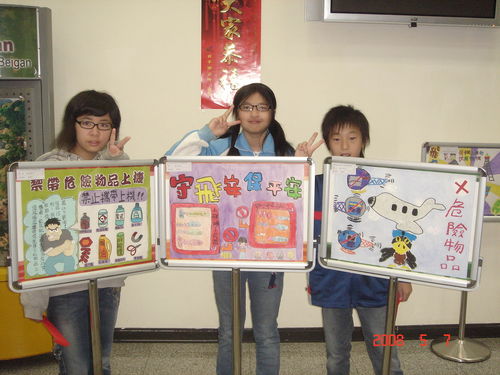 北竿航空站97年度飛安宣導週壁報比賽得獎名單 --閱讀人次 : 3588 北竿航空站97年度飛安宣導週壁報比賽已於日前評選完成,感謝北竿鄉國小學生的踴躍參與,本次壁報比賽參賽作品共計50件,除由航空站各駐站單位主管針對內容切合主體部分評選(占50%),另外亦感謝中山國中兼任美術老師針對作品之版面圖案設計、色彩運用、創意等項目進行評選(占50%),共選出前三名及佳作五名為得獎作品,配合飛安宣導週活動展示於航站大廳,得獎名單如下: