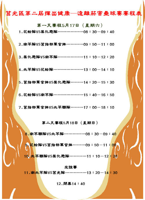 97年莒光區第二屆揮出健康─遠離菸害壘球賽賽程表