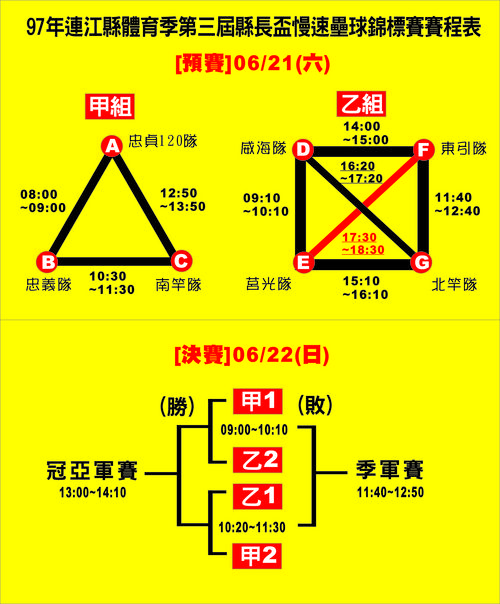 97年連江縣體育季第三屆縣長盃慢速壘球錦標賽賽程表