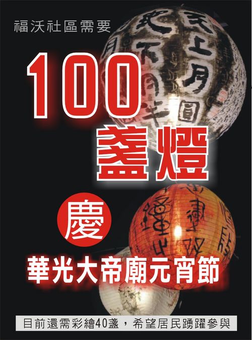 有興趣的居民請踴躍參加﹝另我們要在花燈上寫書法,希望喜愛書法的人士於早上10時揮毫)