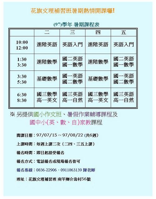 花旗文理補習班暑期熱情開課囉!