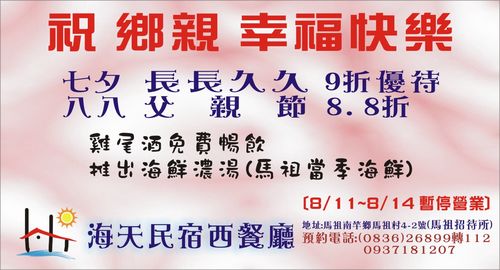 (8/11~8/14主廚休假,本餐廳暫停營業,敬請見諒)