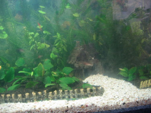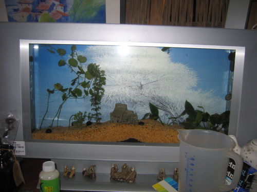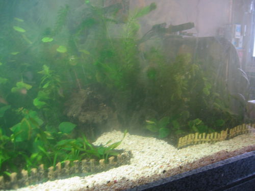 首先清洗河沙及黑土,未清洗的河沙,黑土都會有粉末 .直接放入魚缸需要等兩小時以上水質才會清澈