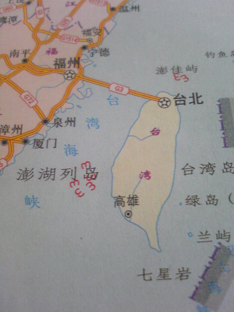 您沒看錯,一條筆直的高速公路就這樣穿越台灣海峽,把福州和台北市緊緊相連,這樣的「公路地圖全集」不是私人收藏,而是全中國販售一本要價55元人民幣。