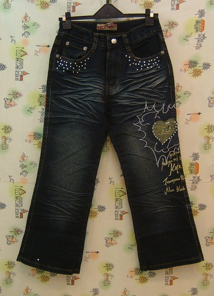 圖八:繡愛心英文字帥氣牛仔長褲(115-160CM穿)