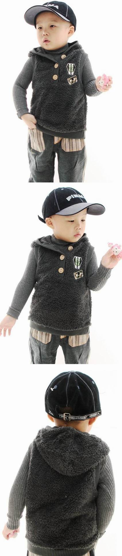 圖三:似綿羊軟毛55徽章連帽背心~灰(5-15號)