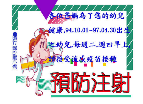請於每週二上午、每週四上午接受流感疫苗接種。